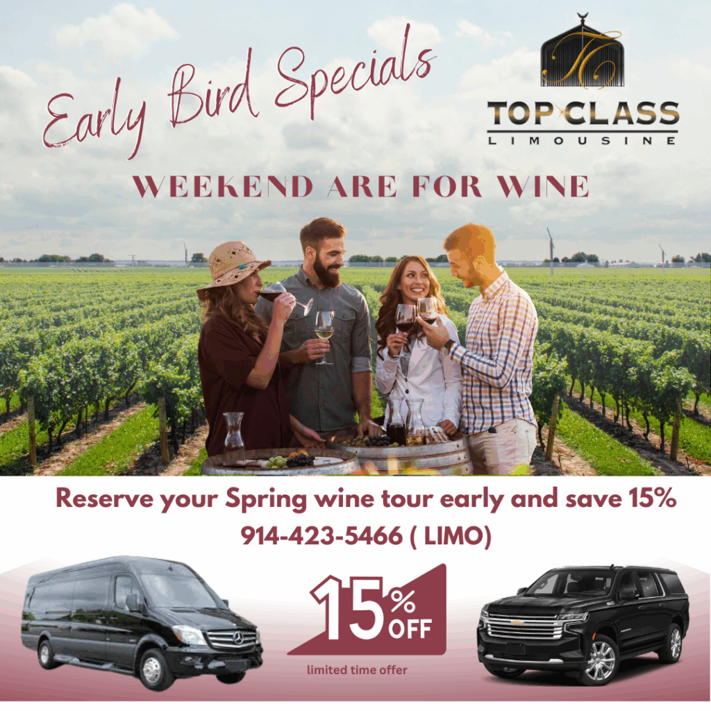 Enjoy the best wineries in Long Island, New Jersey, and Connecticut without worrying about who will be driving. Our winery transportation service allows you and your guests to relax, enjoy wine tastings, and take in the beautiful vineyard views while we handle the transportation. We are currently taking new reservations for winery trips, Whether you're planning a wine tasting day, birthday celebration, bachelorette party, corporate outing, or a relaxing weekend with friends, we provide safe, comfortable, and reliable transportation. Our service can accommodate both small and large groups, making it easy to plan the perfect winery experience for any occasion. Spend the day exploring local vineyards, enjoying great wine, and creating unforgettable memories without the stress of driving. Book your winery transportation today and enjoy a smooth, relaxing, and worry-free winery tour.